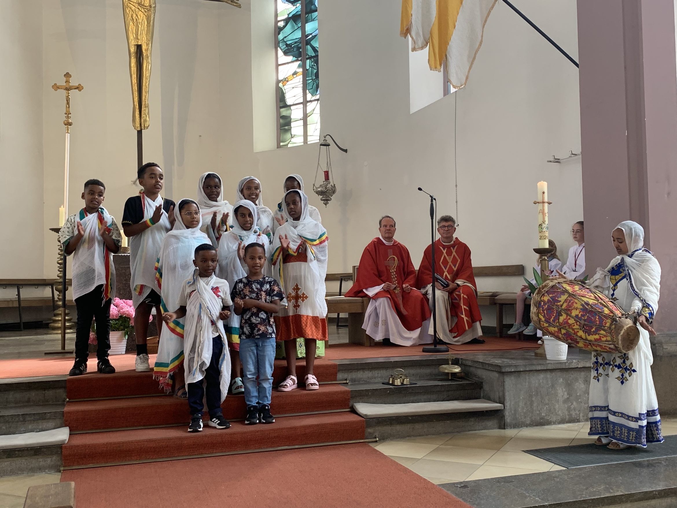 Der Dank geht an alle Helfer der polnischen und äthiopischen Gemeinden, von St. Gertraud und Stift Haug - einfach an alle, die Kuchen und Waffeln gebacken, Bänke gestellt und wieder abgebaut haben, gegrillt, Getränke ausgeschänkt, Geschirr zusammengetragen und abgewaschen haben, alle Besogungungen übernommen oder auf andere Weise zum Gelingen des Festes beigetragen haben!