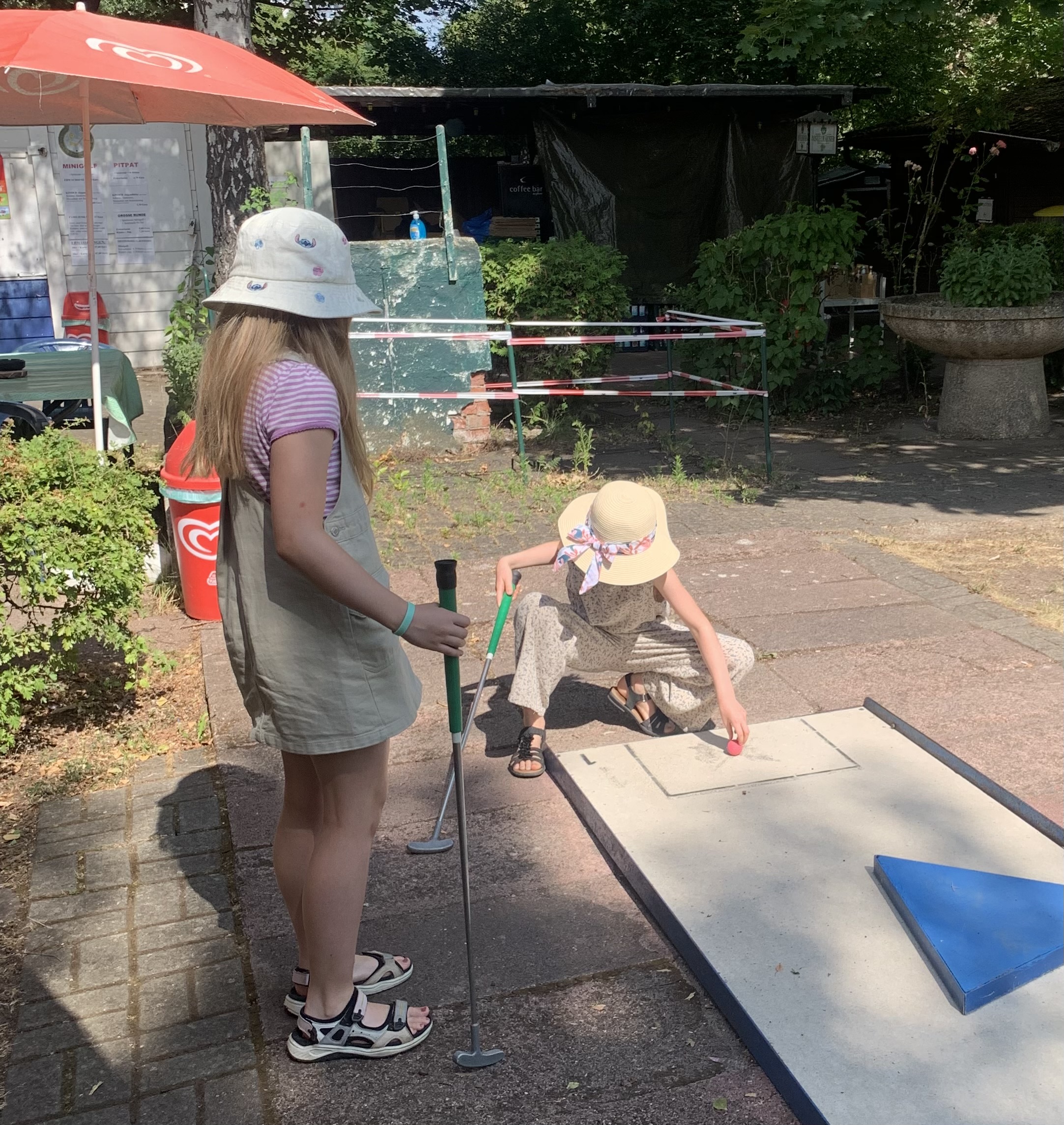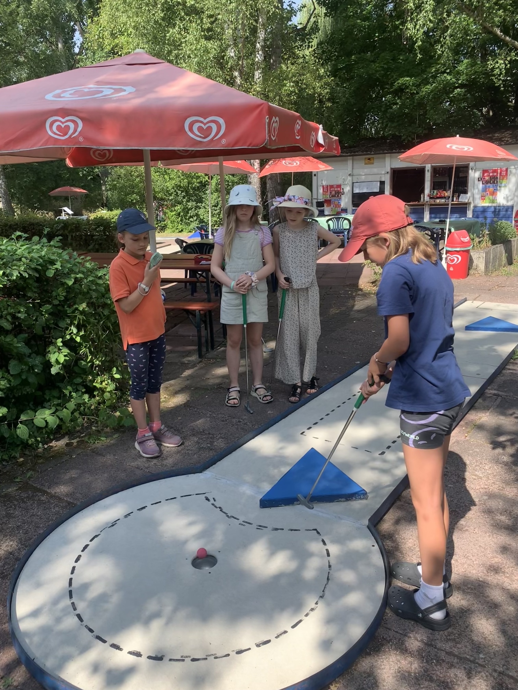 Egal ob mit Vorerfahrung oder das erste Mal, es hat allen Spaß gemacht. Jede Bahn hatte ihre Tücken, aber so manches Mal waren wir erstaunt, dass der kleine Ball dann doch im Loch oder Netz landete. So hatten alle am Ende ein Eis verdient!