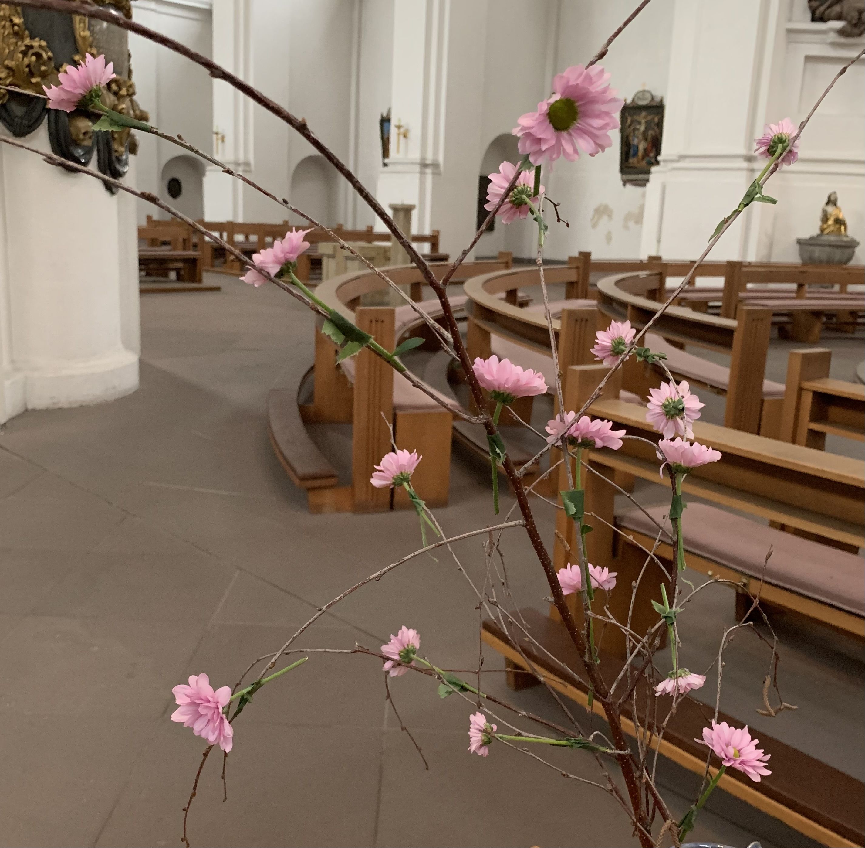 Das Lied „Maria durch ein Dornwald ging“ leitete durch die dritte. Ursprünglich kein Weihnachtslied, sondern ein siebenstrophiges Wallfahrtslied, kann es den Blick auf die Menschwerdung Gottes lenken und ebenso auf das eigene Leben, die Dornen, aber auch die Rosenblüten.