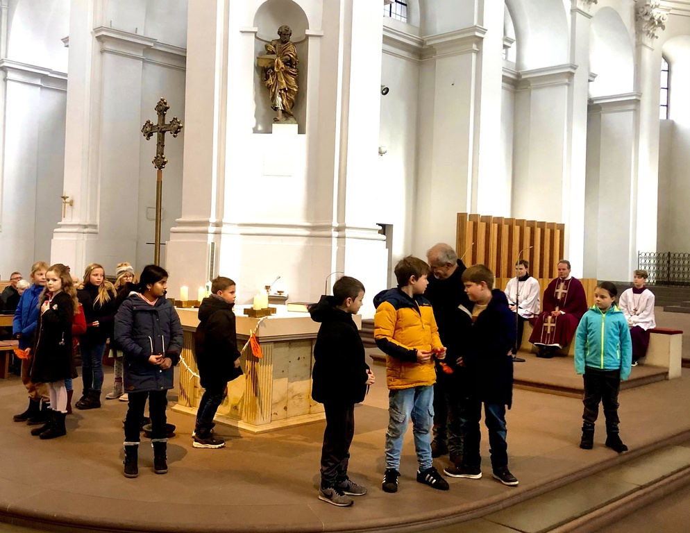 wurden die Kommunionkinder der Pfarreiengemeinschaft im Gottesdienst der Gemeinde vorgestellt. Oder besser - sie stellten sich selber vor. In der Woche zuvor hatten sie sich mit einem ersten Aktionstag auf den Weg gemacht, nicht nur auf den Weg hin zu ihrem besonderen Fest, sondern vor allem auf den Weg zu Jesus. Jeder hatte einen Fußabdruck beschriftet, mit Namen und Hobbies, als Zeichen für die gemeinsamen Schritte mit Jesus, aber auch dafür, dass jeder von uns eine Spur hinterlässt: auf der Welt und im Leben aller, deren Lebenswege wir berühren.